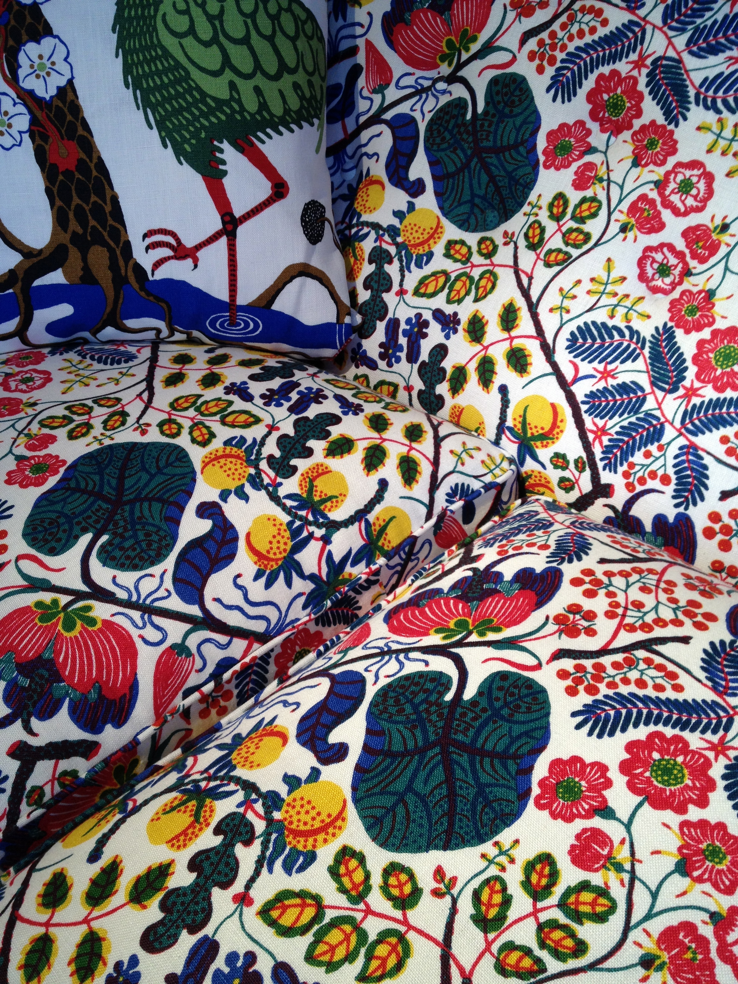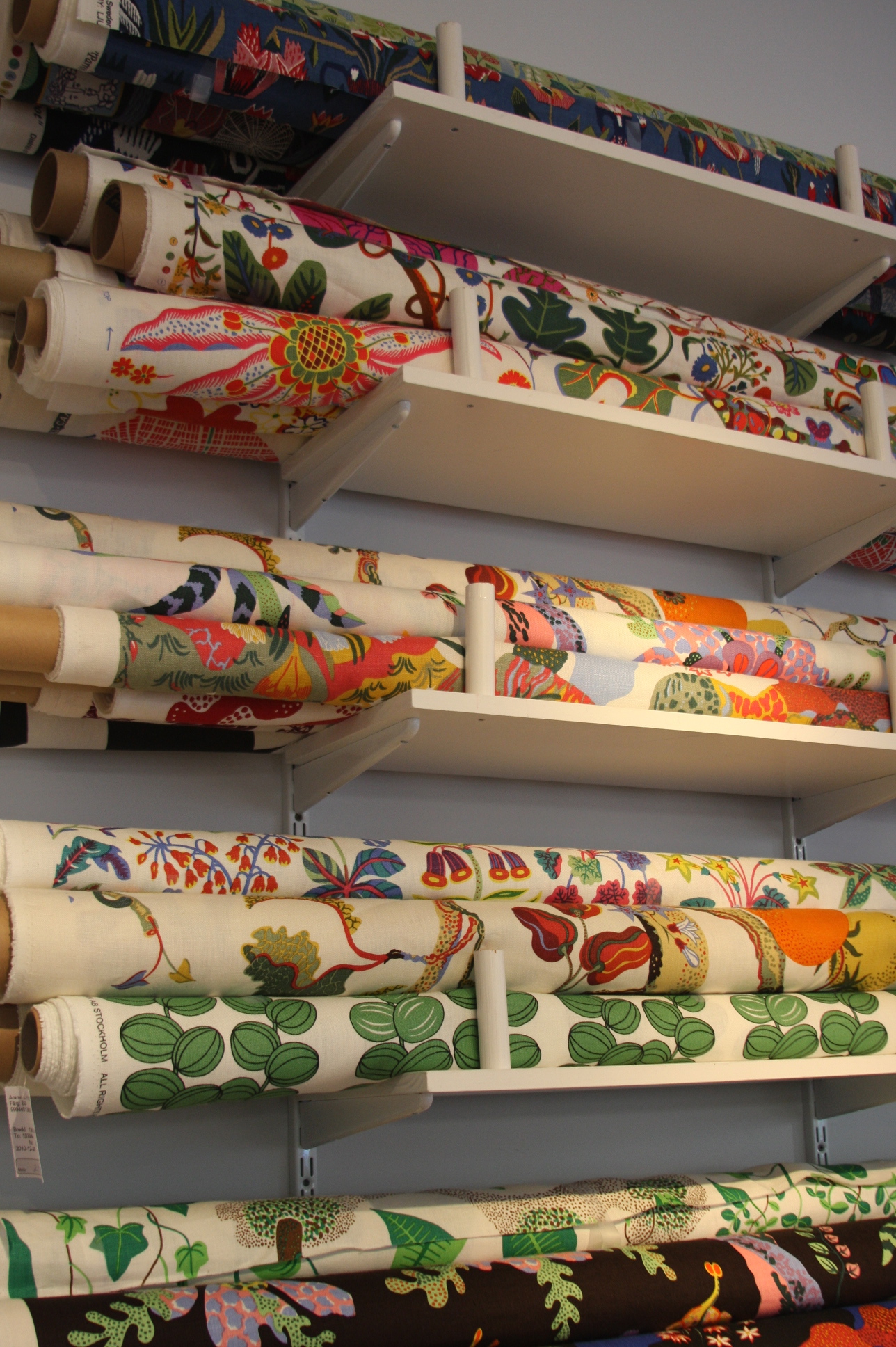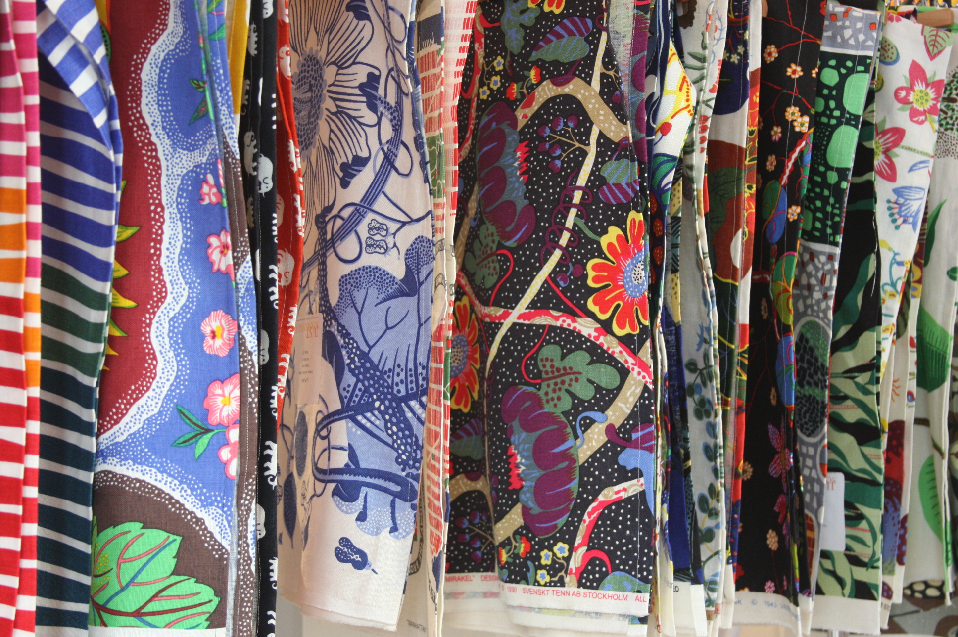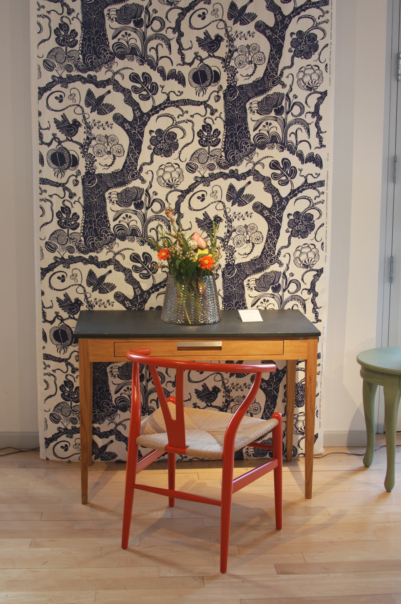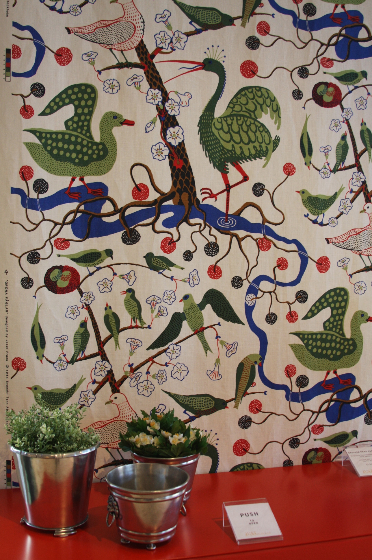 Today’s post brings me back to my intern days working for an interior decorator. I made many a trip to Just Scandinavian, a colorful bright spot in TriBeCa. It was always a treat to have to go and pick-up or return fabric samples or check on orders. Purveyor of all things Scandinavian, Just Scandinavian houses a collection of furniture, lighting, and accessories by about 30 different Scandinavian designers and artists, and the iconic fabric and wallpaper prints designed by Josef Frank. Created by Frank in the mid-nineteen hundreds in Stockholm, his lively, colorful, bold botanical prints for fabric and wallpaper are as modern today as they were seventy-five years ago. Google even payed homage to Frank creating a Google Doodle for his 125th birthday last July. I went a little crazy photographing, but I just couldn’t help myself. It brings me joy to share these beauties with you.