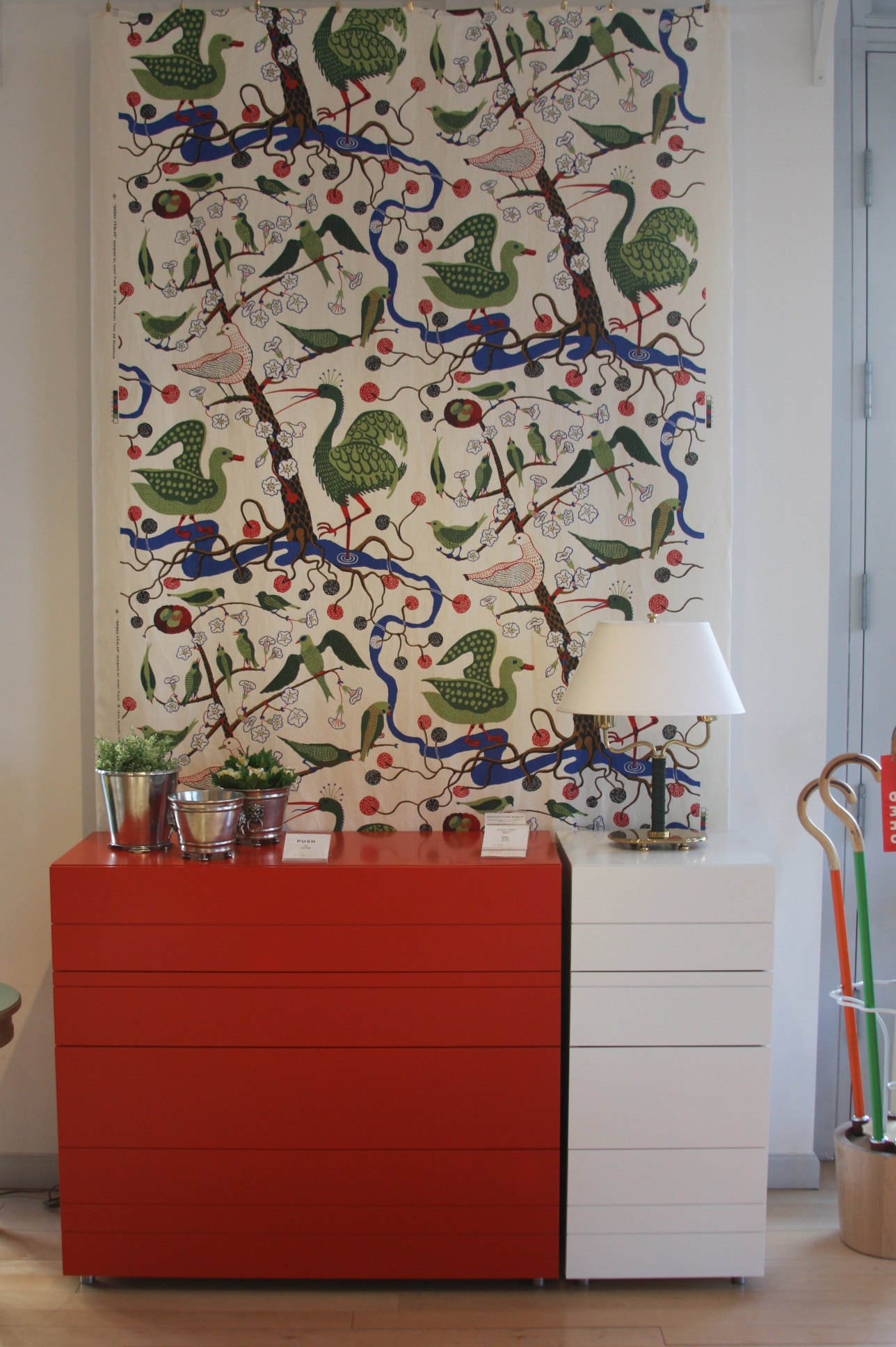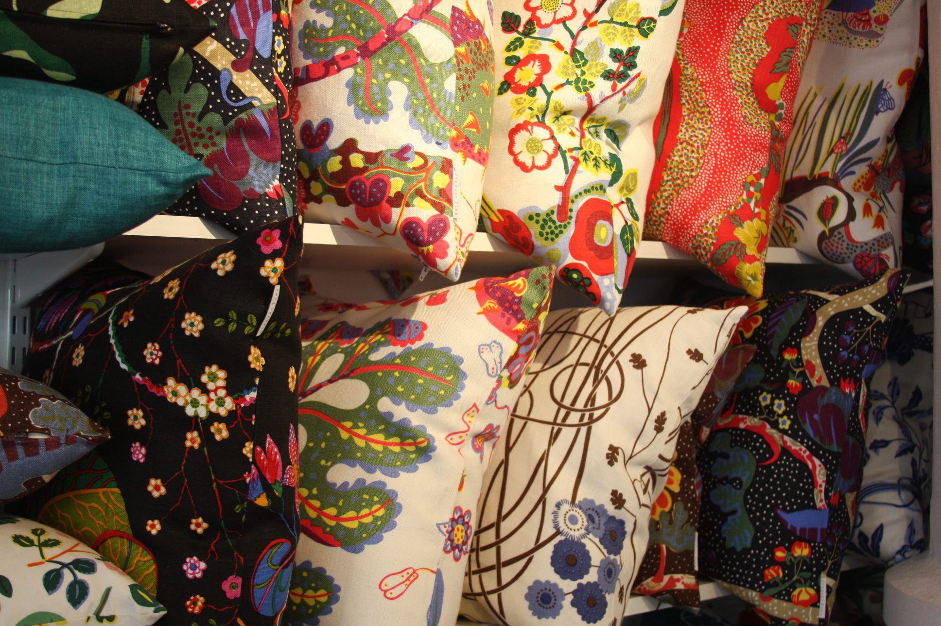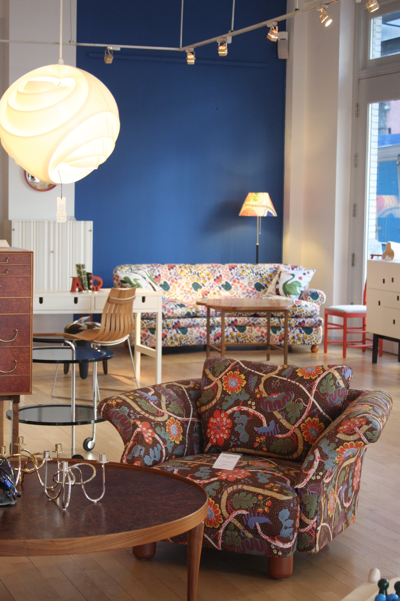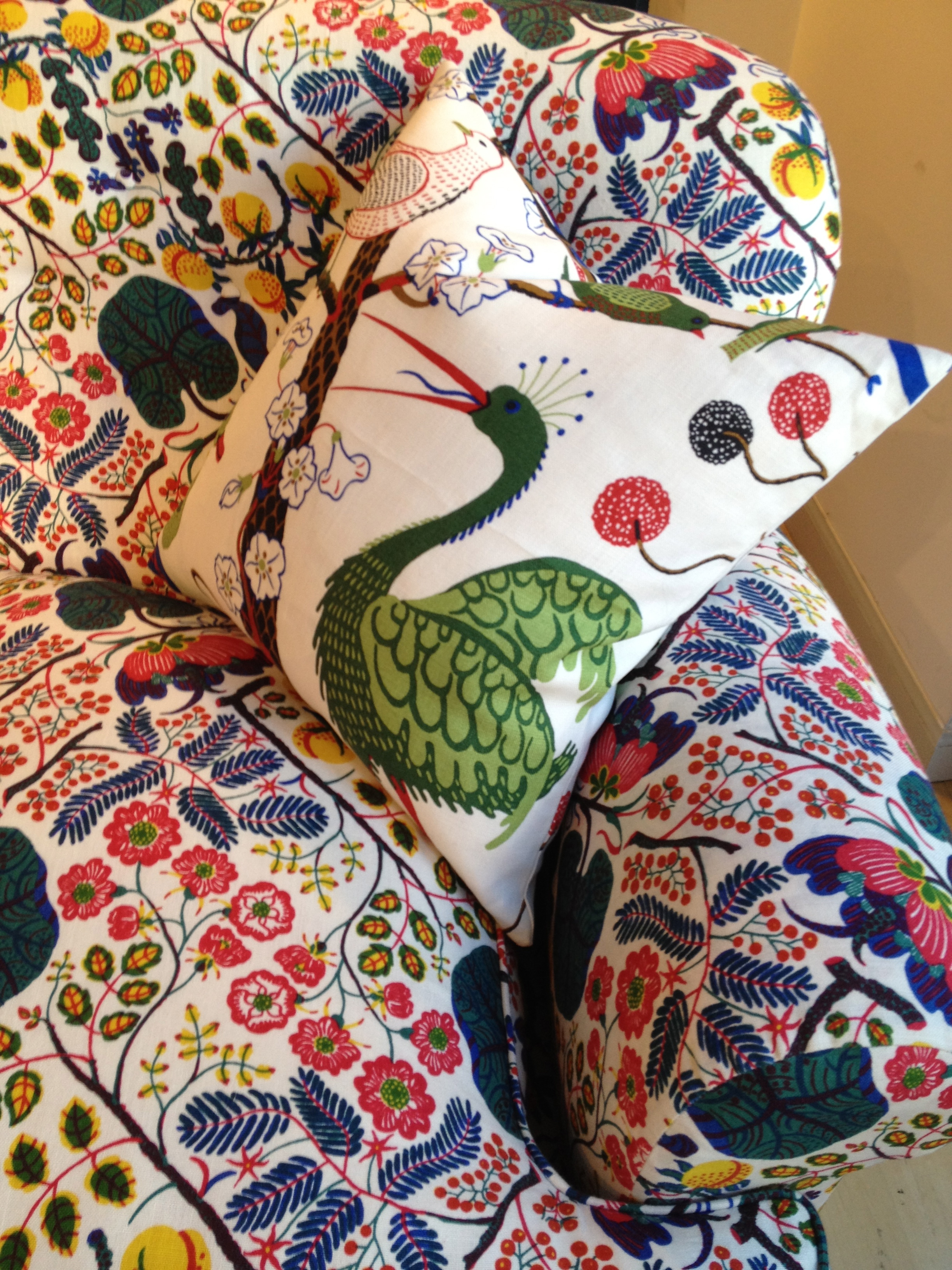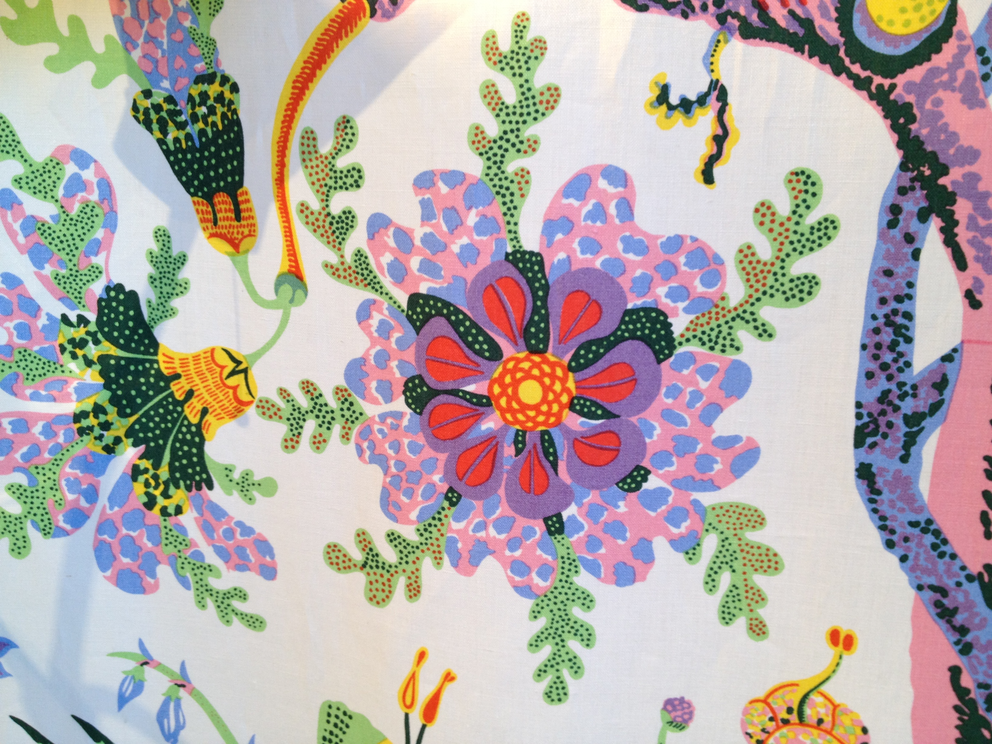 Today’s post brings me back to my intern days working for an interior decorator. I made many a trip to Just Scandinavian, a colorful bright spot in TriBeCa. It was always a treat to have to go and pick-up or return fabric samples or check on orders. Purveyor of all things Scandinavian, Just Scandinavian houses a collection of furniture, lighting, and accessories by about 30 different Scandinavian designers and artists, and the iconic fabric and wallpaper prints designed by Josef Frank. Created by Frank in the mid-nineteen hundreds in Stockholm, his lively, colorful, bold botanical prints for fabric and wallpaper are as modern today as they were seventy-five years ago. Google even payed homage to Frank creating a Google Doodle for his 125th birthday last July. I went a little crazy photographing, but I just couldn’t help myself. It brings me joy to share these beauties with you.