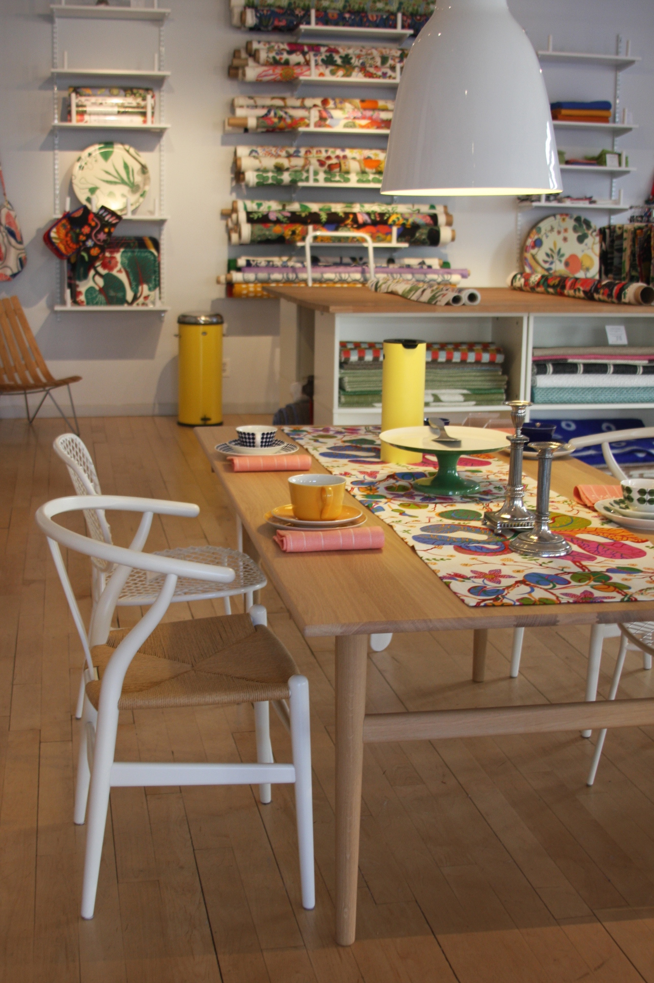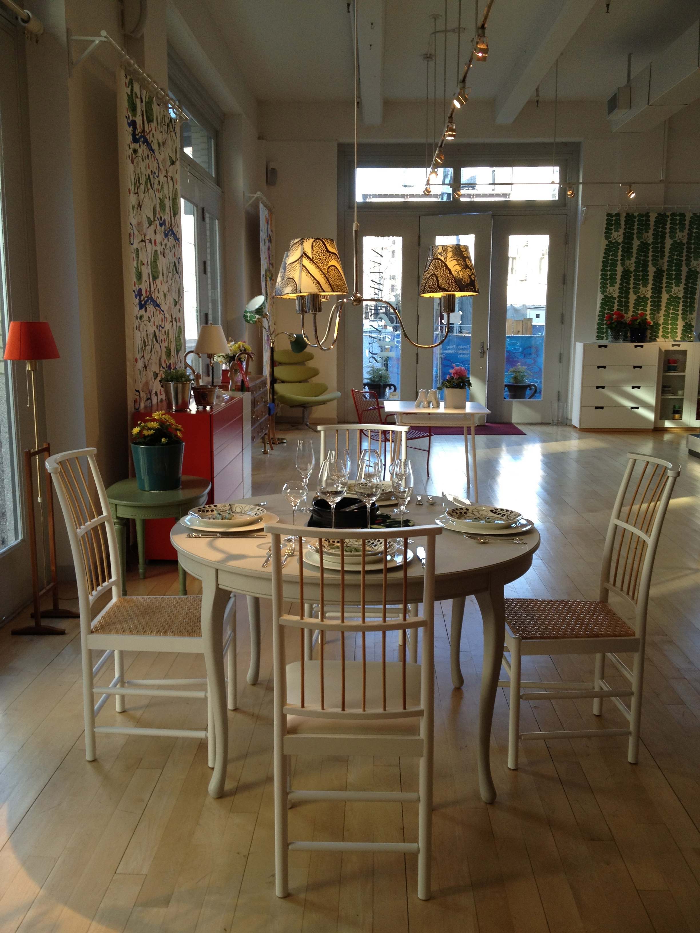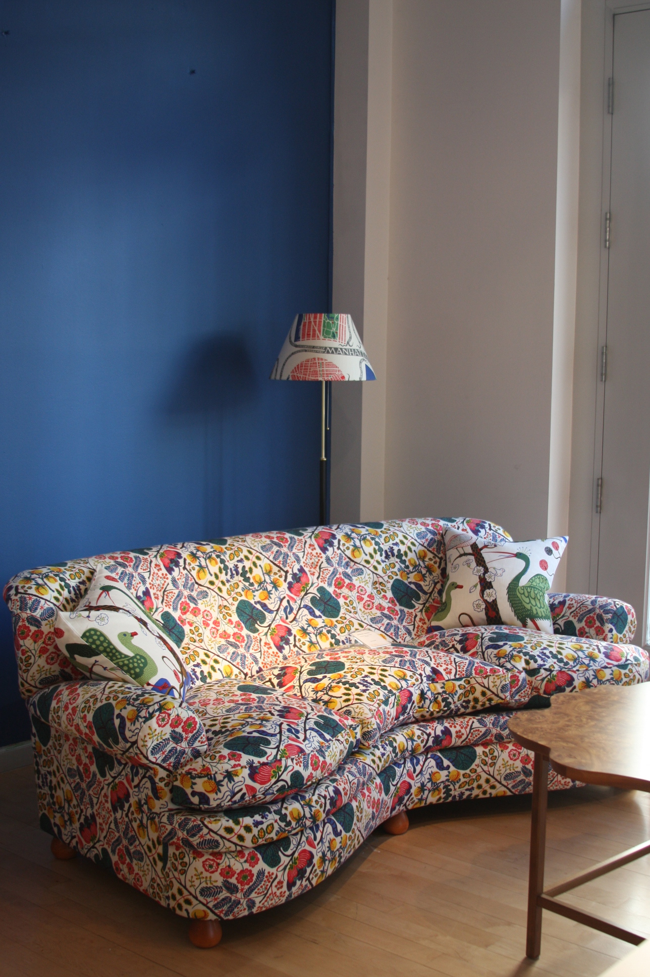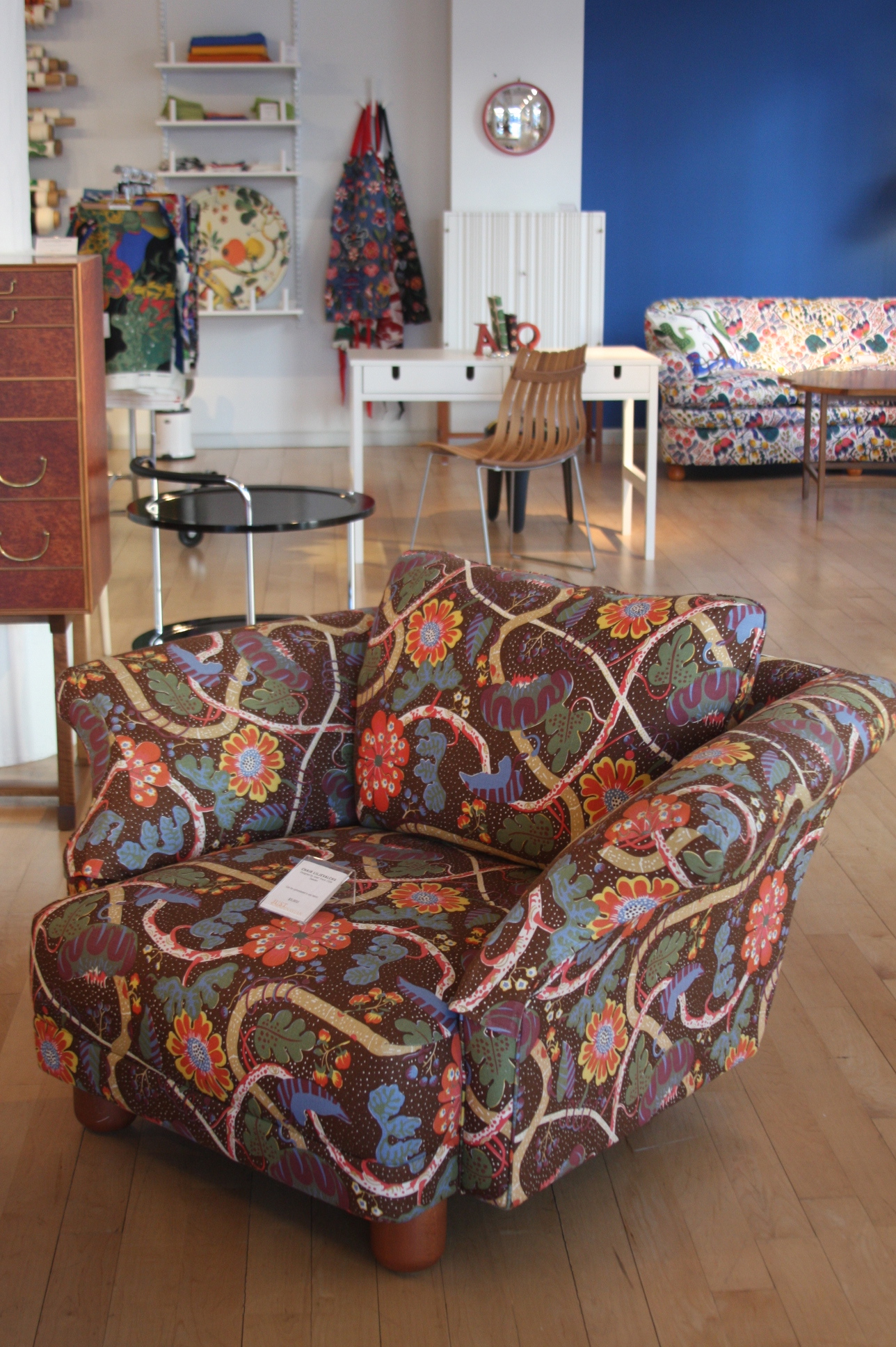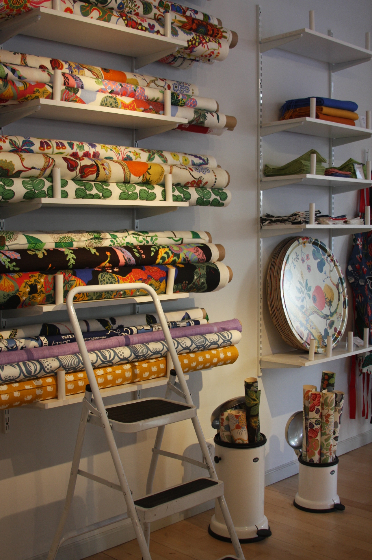 Today’s post brings me back to my intern days working for an interior decorator. I made many a trip to Just Scandinavian, a colorful bright spot in TriBeCa. It was always a treat to have to go and pick-up or return fabric samples or check on orders. Purveyor of all things Scandinavian, Just Scandinavian houses a collection of furniture, lighting, and accessories by about 30 different Scandinavian designers and artists, and the iconic fabric and wallpaper prints designed by Josef Frank. Created by Frank in the mid-nineteen hundreds in Stockholm, his lively, colorful, bold botanical prints for fabric and wallpaper are as modern today as they were seventy-five years ago. Google even payed homage to Frank creating a Google Doodle for his 125th birthday last July. I went a little crazy photographing, but I just couldn’t help myself. It brings me joy to share these beauties with you.
