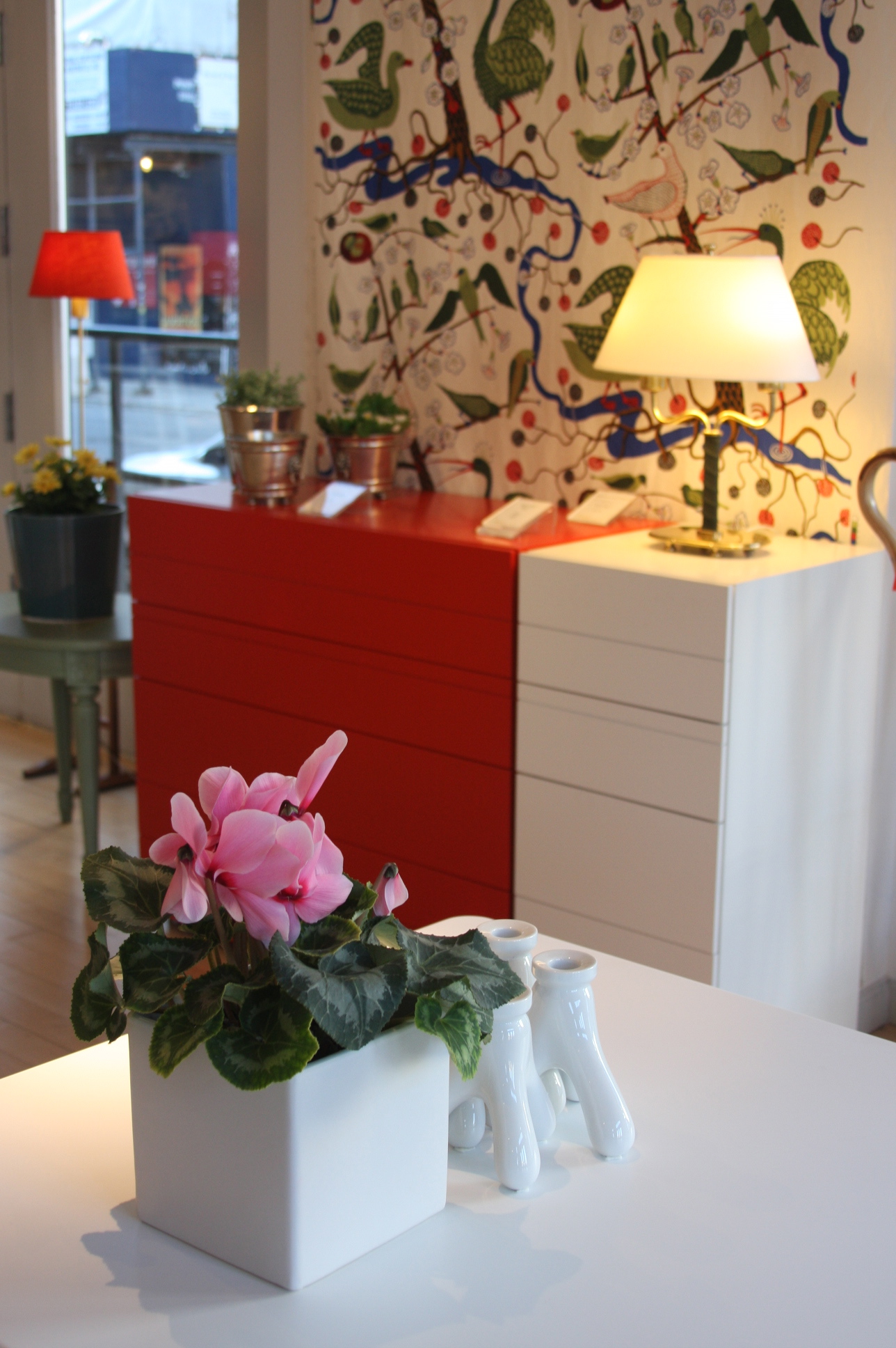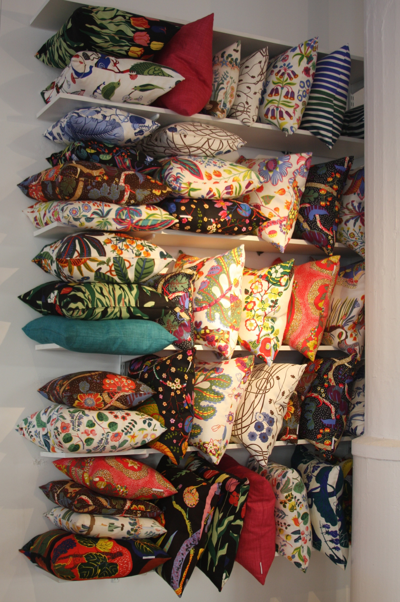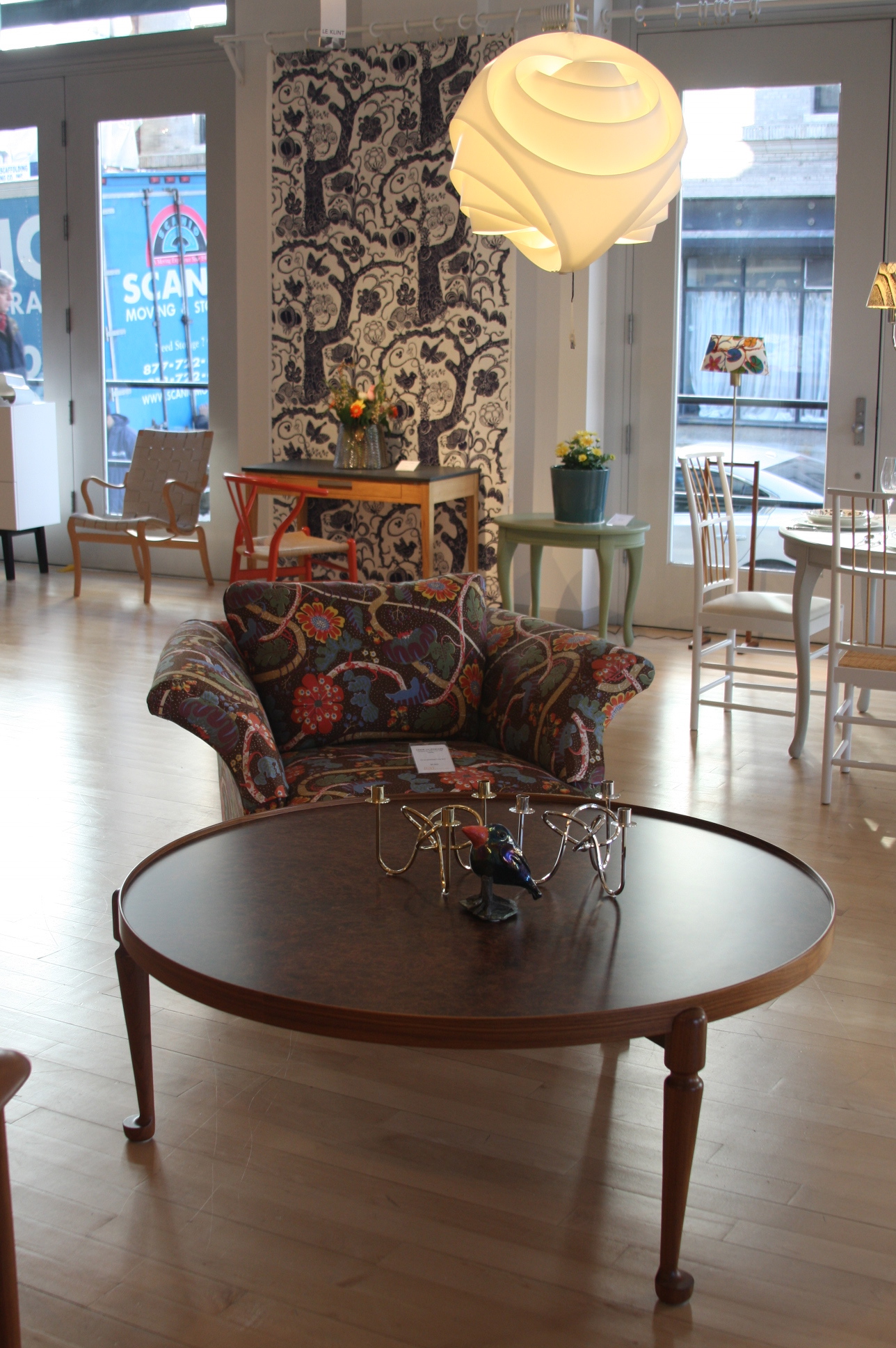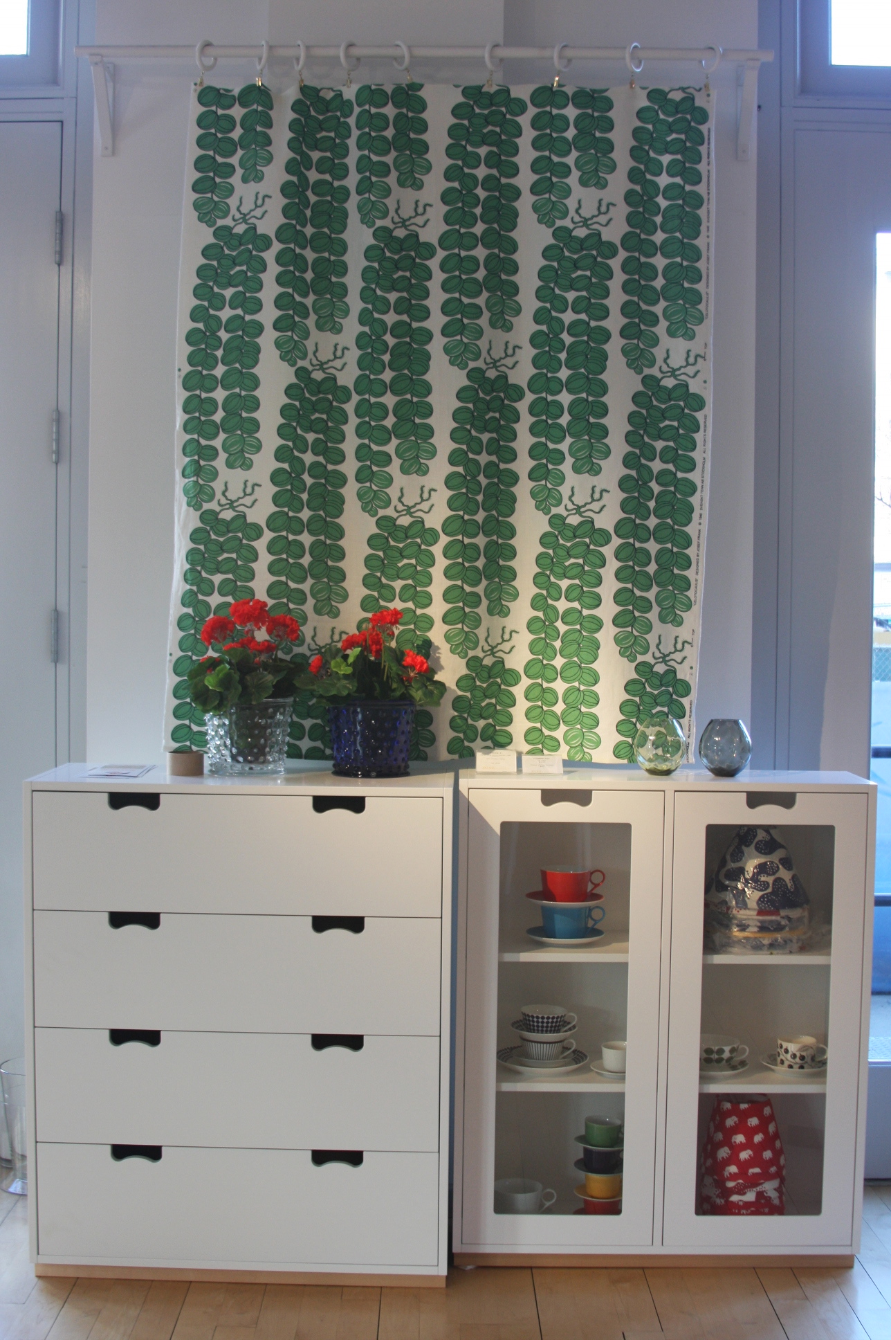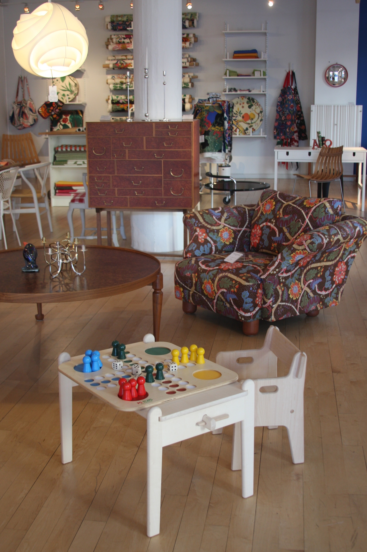 Today’s post brings me back to my intern days working for an interior decorator. I made many a trip to Just Scandinavian, a colorful bright spot in TriBeCa. It was always a treat to have to go and pick-up or return fabric samples or check on orders. Purveyor of all things Scandinavian, Just Scandinavian houses a collection of furniture, lighting, and accessories by about 30 different Scandinavian designers and artists, and the iconic fabric and wallpaper prints designed by Josef Frank. Created by Frank in the mid-nineteen hundreds in Stockholm, his lively, colorful, bold botanical prints for fabric and wallpaper are as modern today as they were seventy-five years ago. Google even payed homage to Frank creating a Google Doodle for his 125th birthday last July. I went a little crazy photographing, but I just couldn’t help myself. It brings me joy to share these beauties with you.