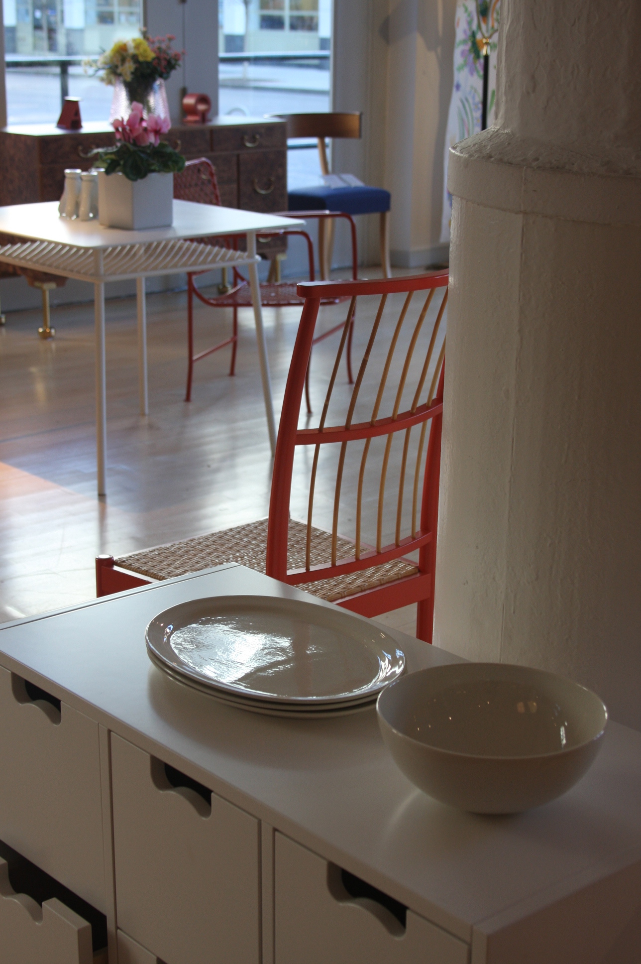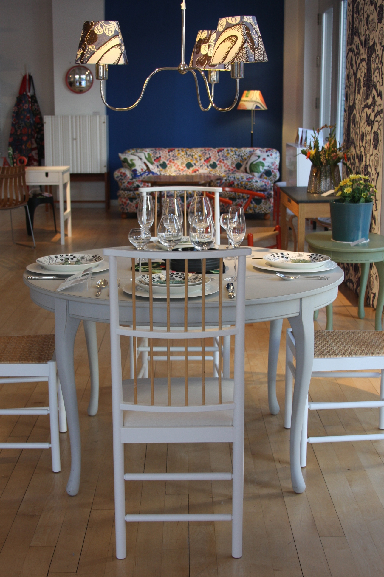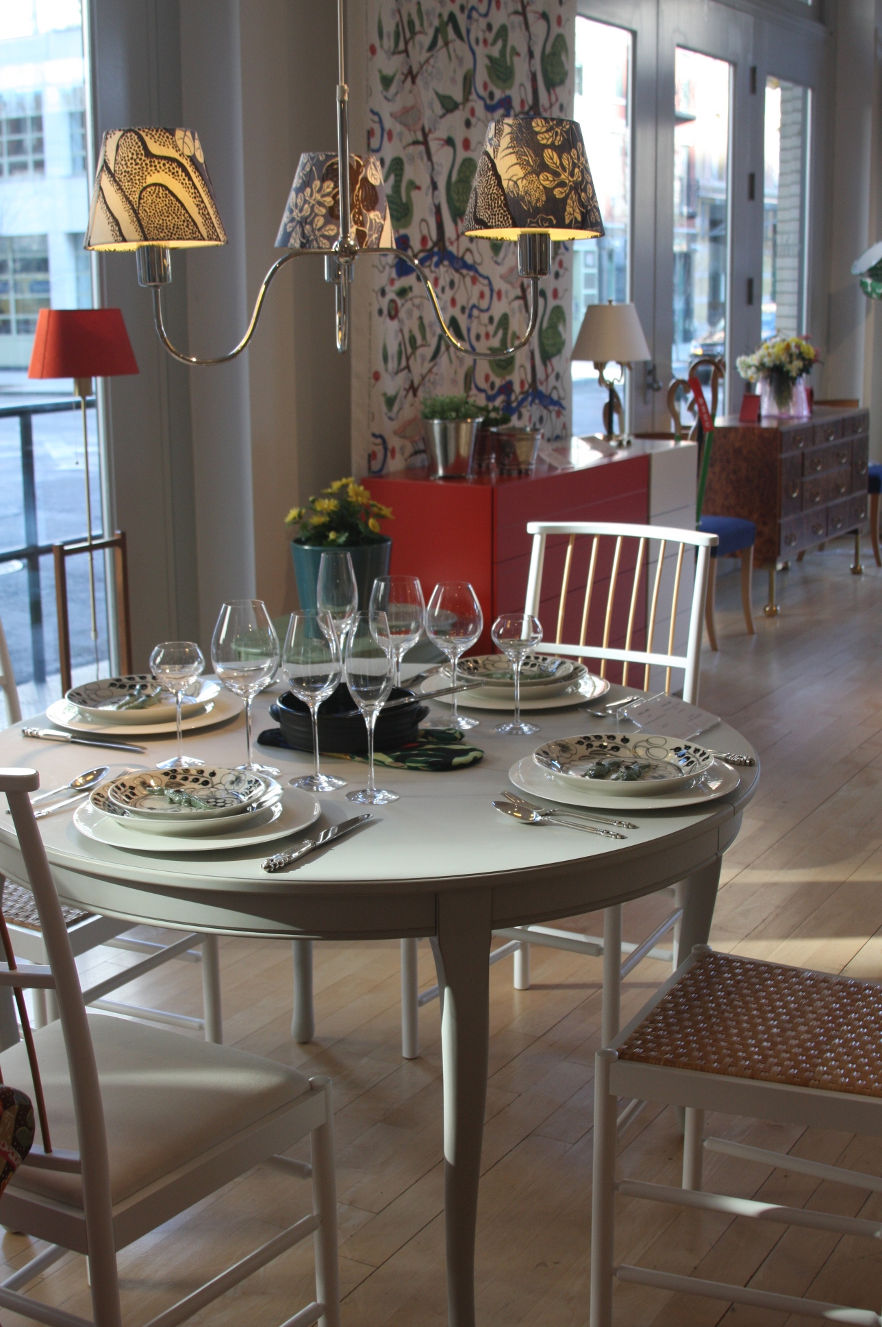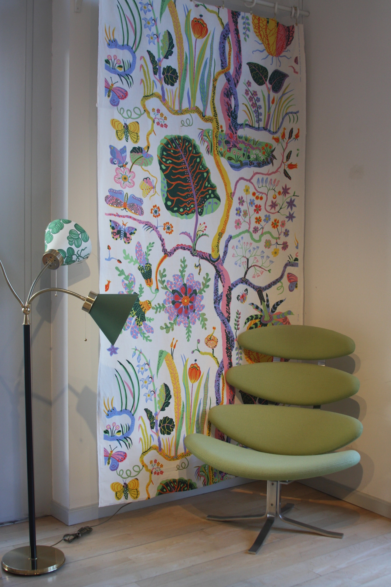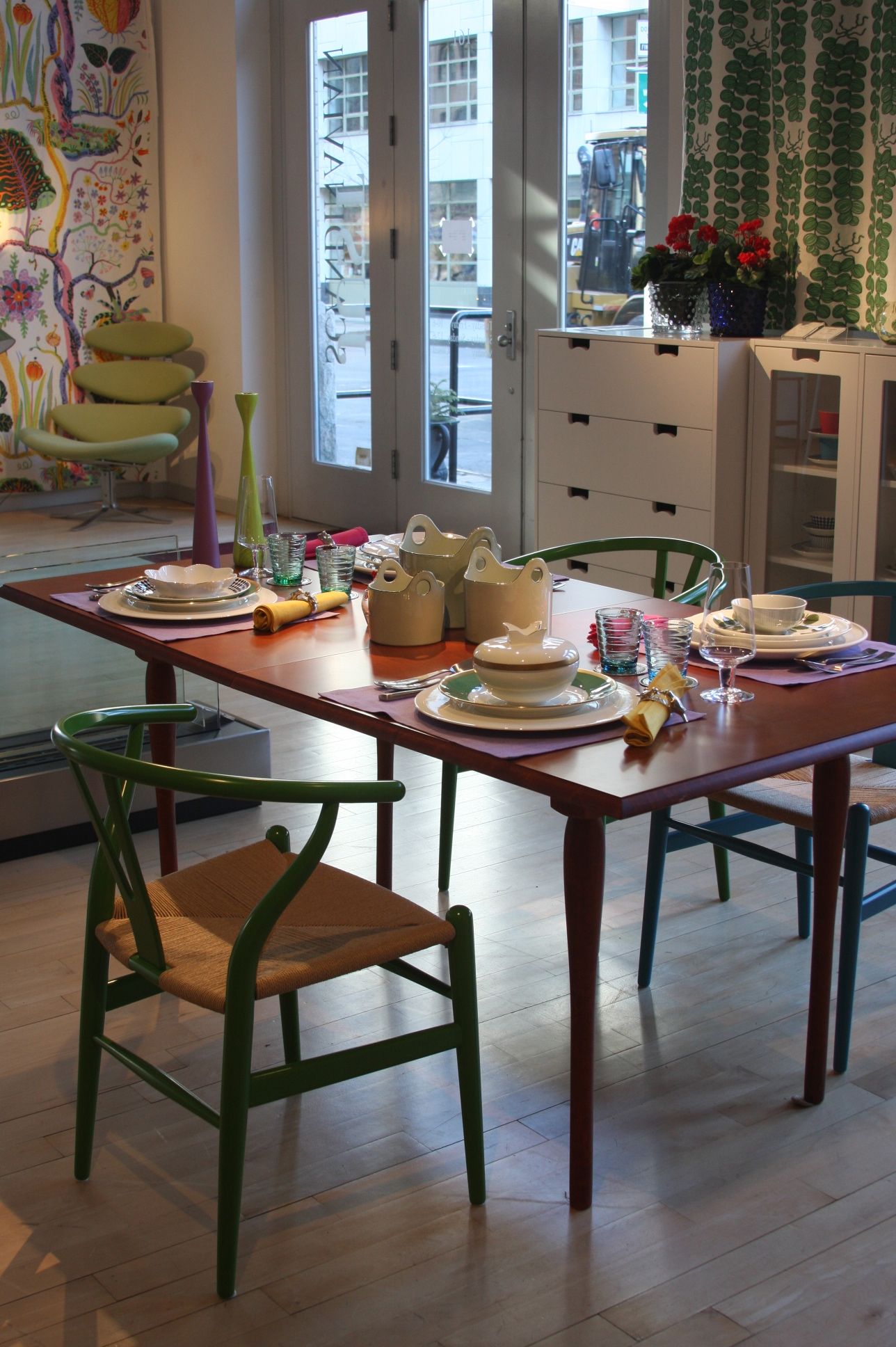 Today’s post brings me back to my intern days working for an interior decorator. I made many a trip to Just Scandinavian, a colorful bright spot in TriBeCa. It was always a treat to have to go and pick-up or return fabric samples or check on orders. Purveyor of all things Scandinavian, Just Scandinavian houses a collection of furniture, lighting, and accessories by about 30 different Scandinavian designers and artists, and the iconic fabric and wallpaper prints designed by Josef Frank. Created by Frank in the mid-nineteen hundreds in Stockholm, his lively, colorful, bold botanical prints for fabric and wallpaper are as modern today as they were seventy-five years ago. Google even payed homage to Frank creating a Google Doodle for his 125th birthday last July. I went a little crazy photographing, but I just couldn’t help myself. It brings me joy to share these beauties with you.