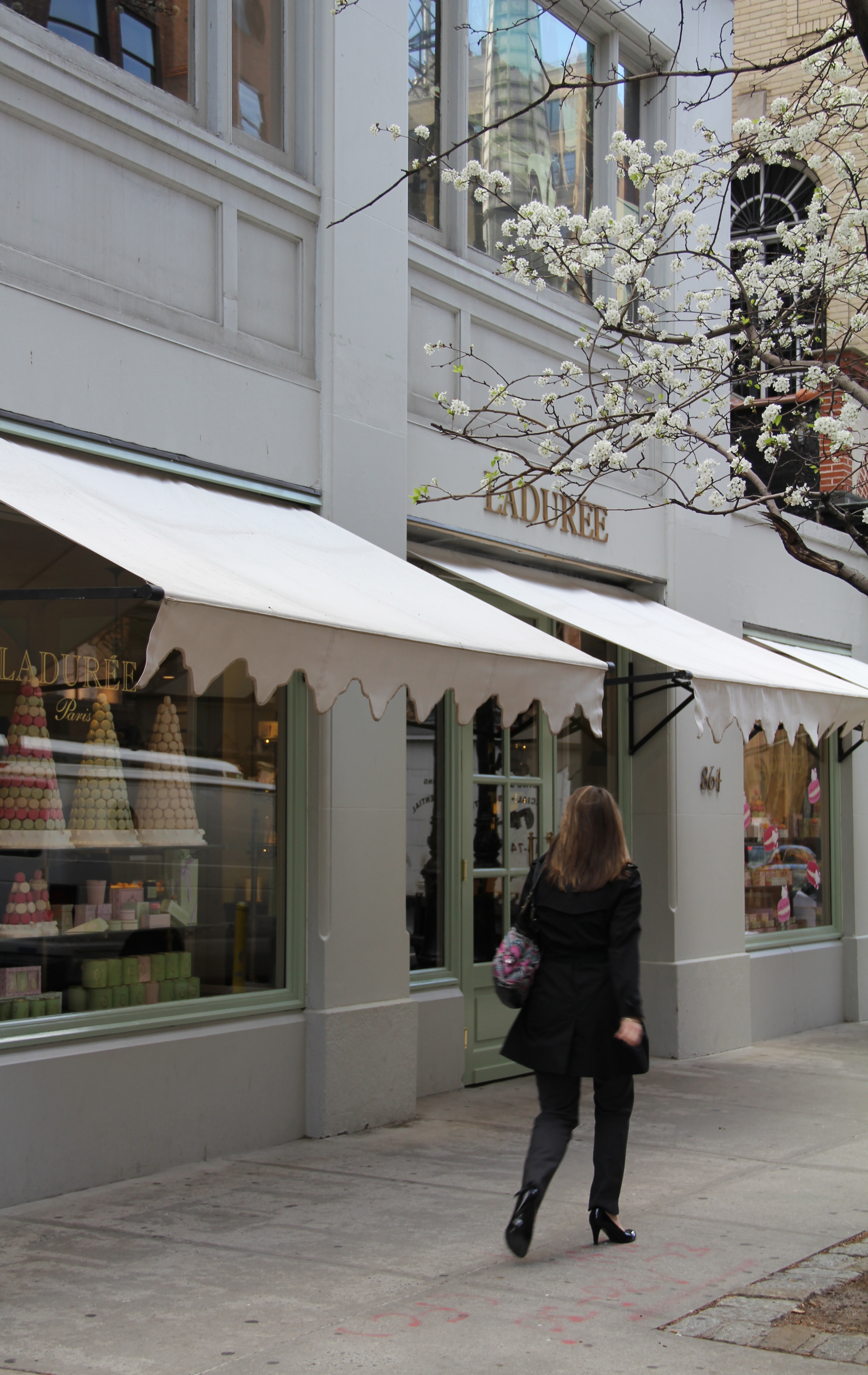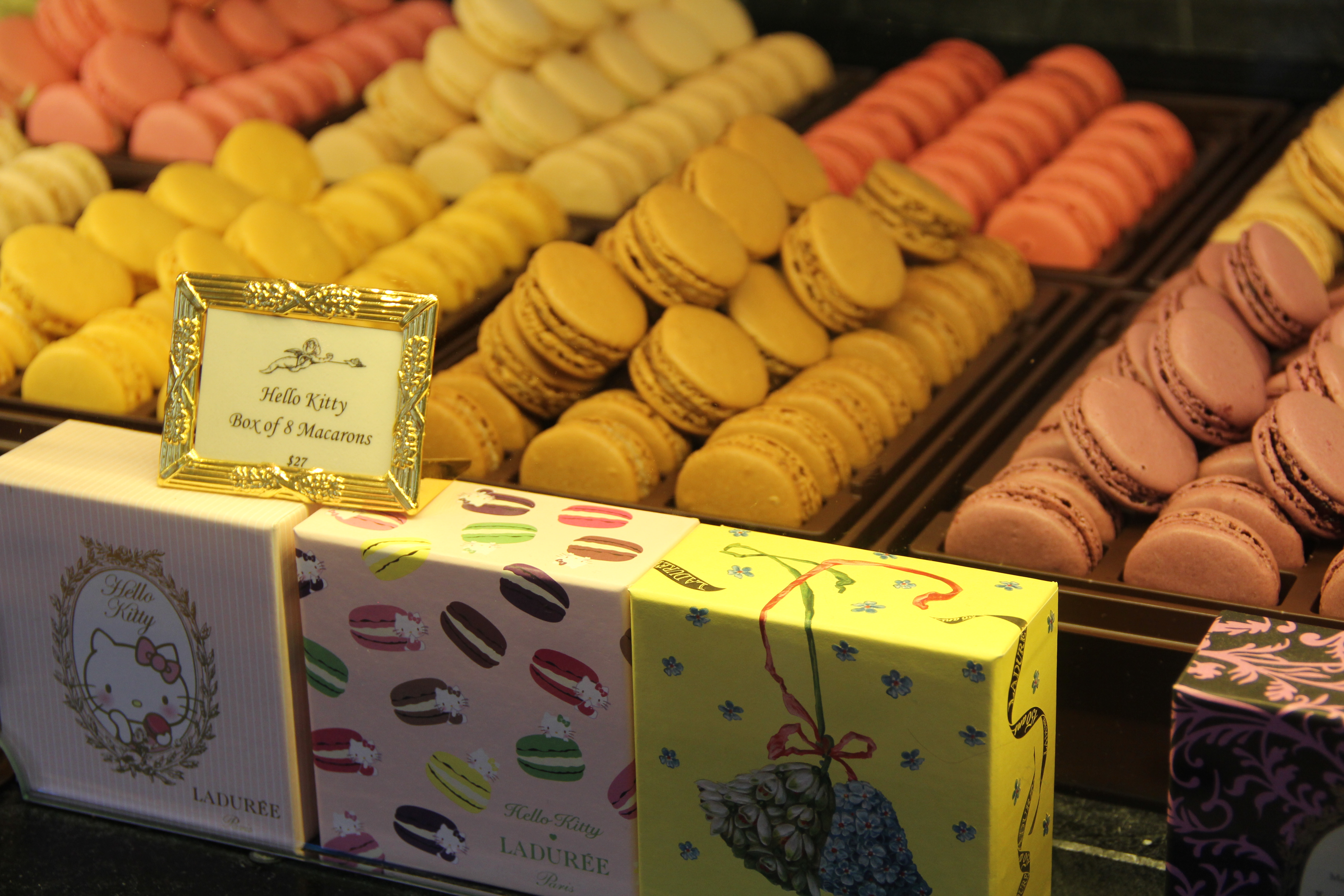 I first fell in love with Ladurée when I was in Paris nine years ago. The famed Parisian macaron patisserie is very rarely without a line wrapping around its exterior. The sweet treats have their pull, but Ladurée’s decor of pistachio greens, cherry blossom pinks and lilac purples tempt all the same. As a follow up to my post on The Cherry Blossom Festival, I am happy to report that Ladurée New York Madison is offering a limited edition cherry blossom-flavored macaron and Fleur de Cerisier scented candles in boxes designed by Japanese fashion designer Tsumori Chisato. The macarons are out of this world. And the bougie fleur de cerisier will remind you of spring all summer long. Hello Kitty is the next featured box design. Just in time for Easter.