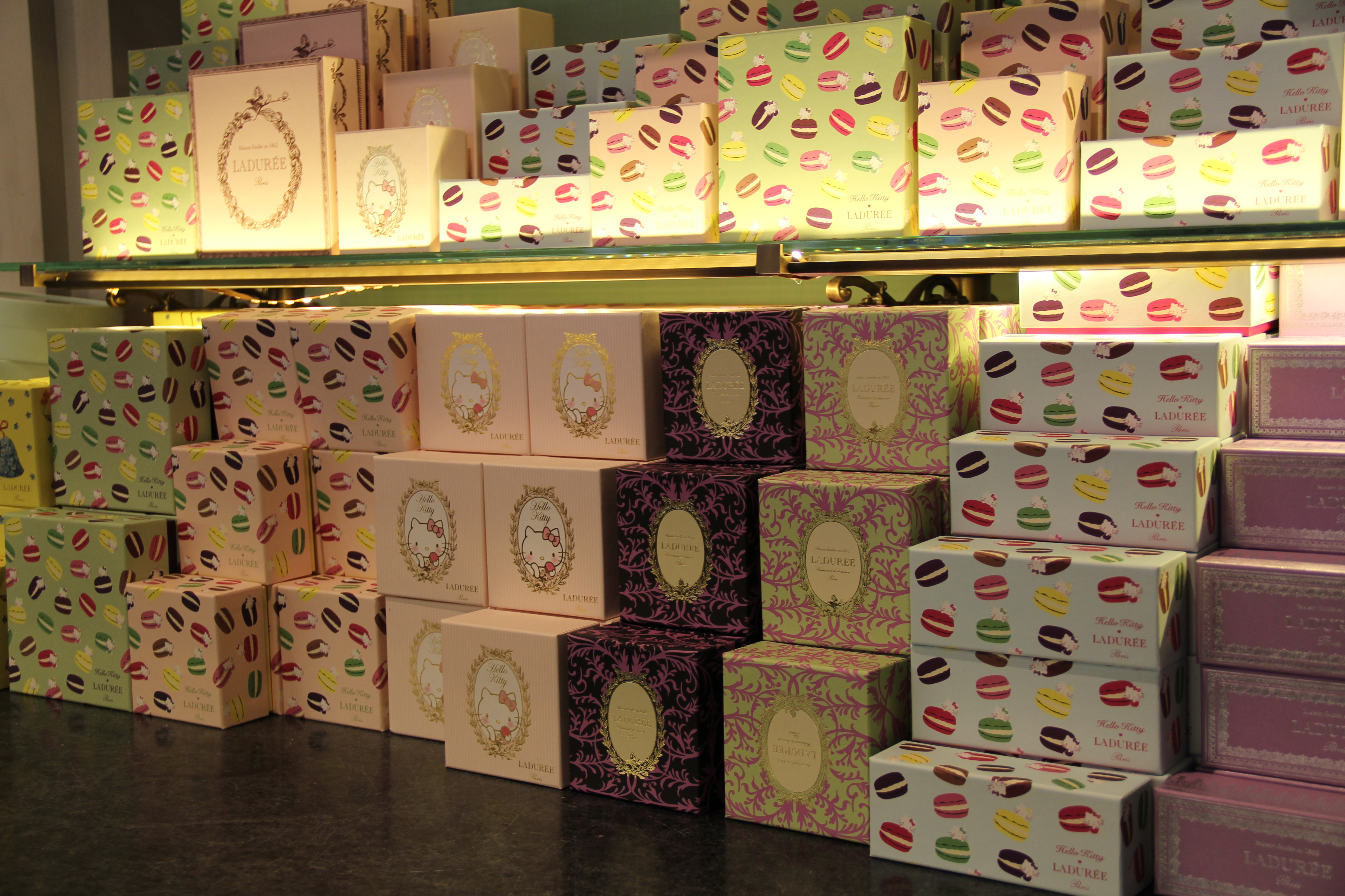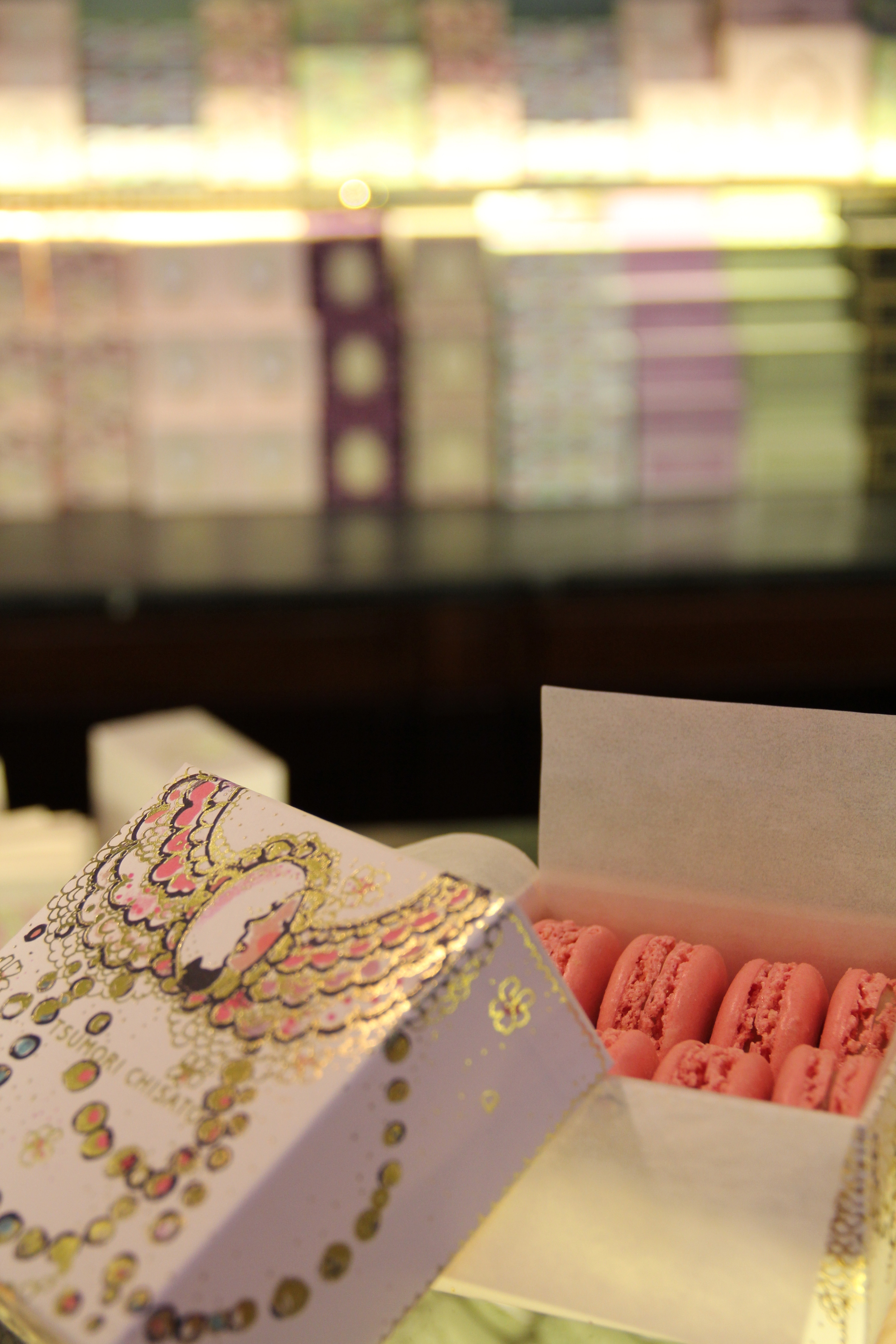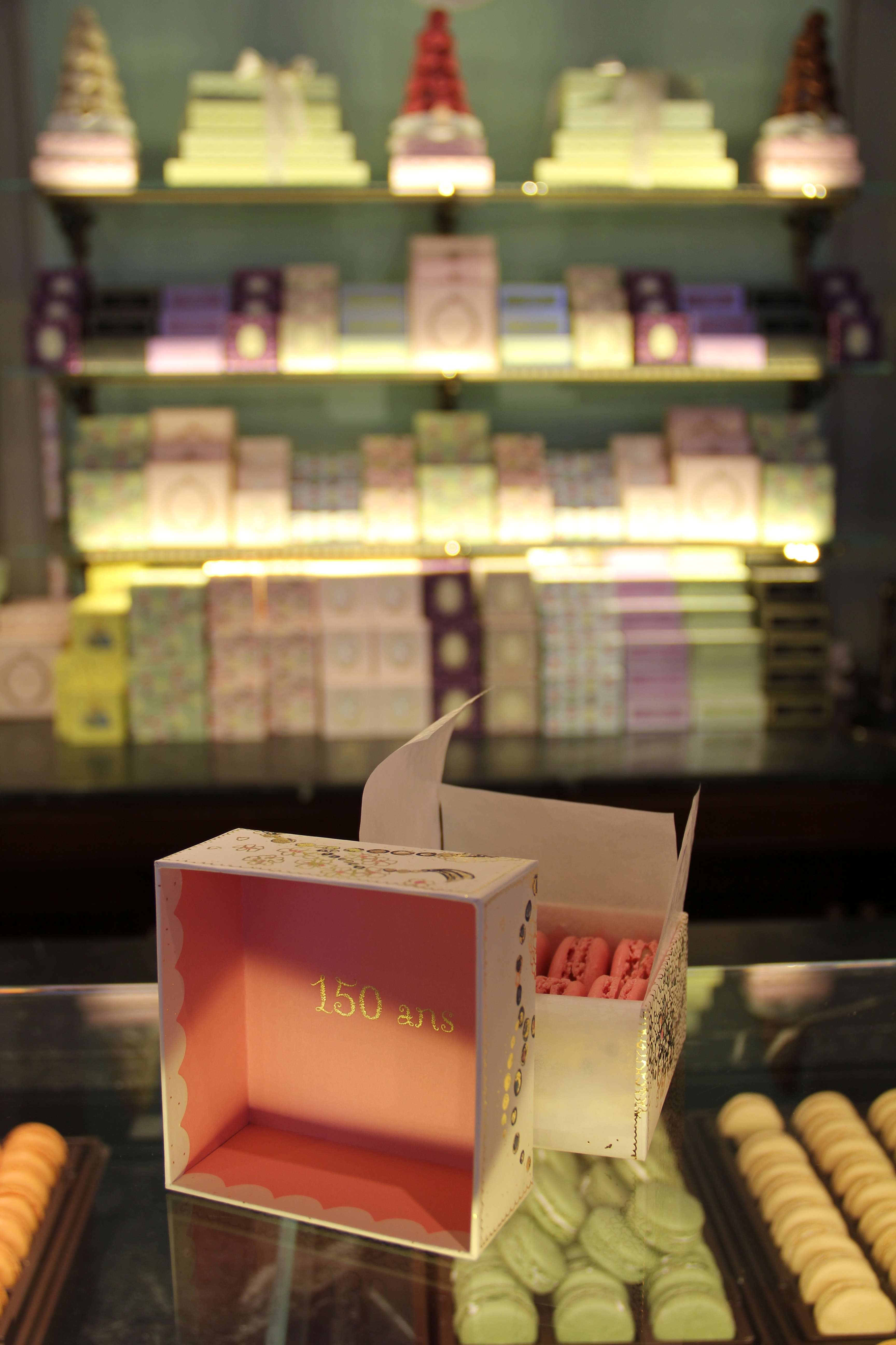 Tsumori Chisato themed windows, candles and macaron boxes. The amazing Fleur de Cerisier macarons. The special edition boxes to celebrate Ladurée’s 150 Year Anniversary feature a different designer monthly throughout the year.