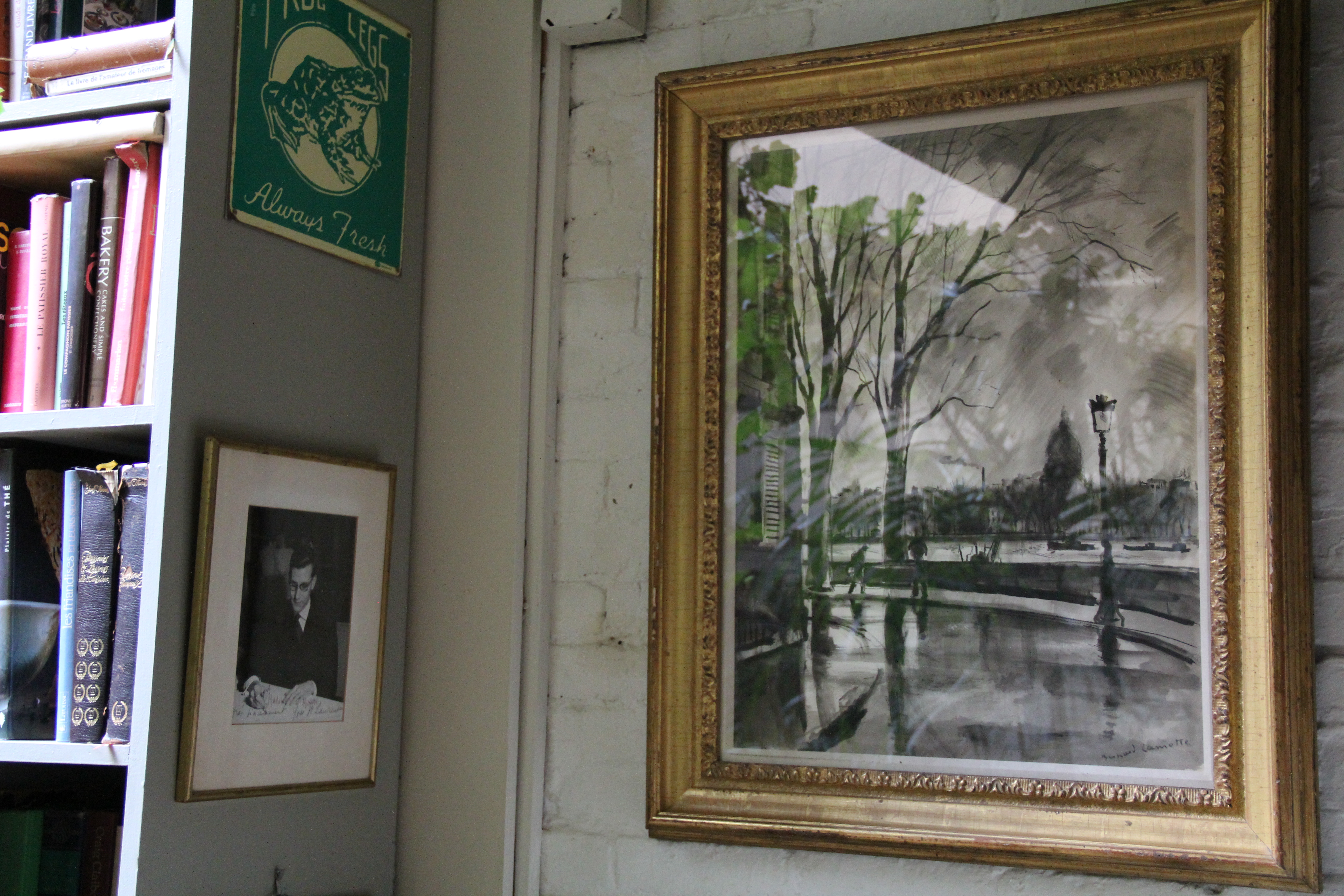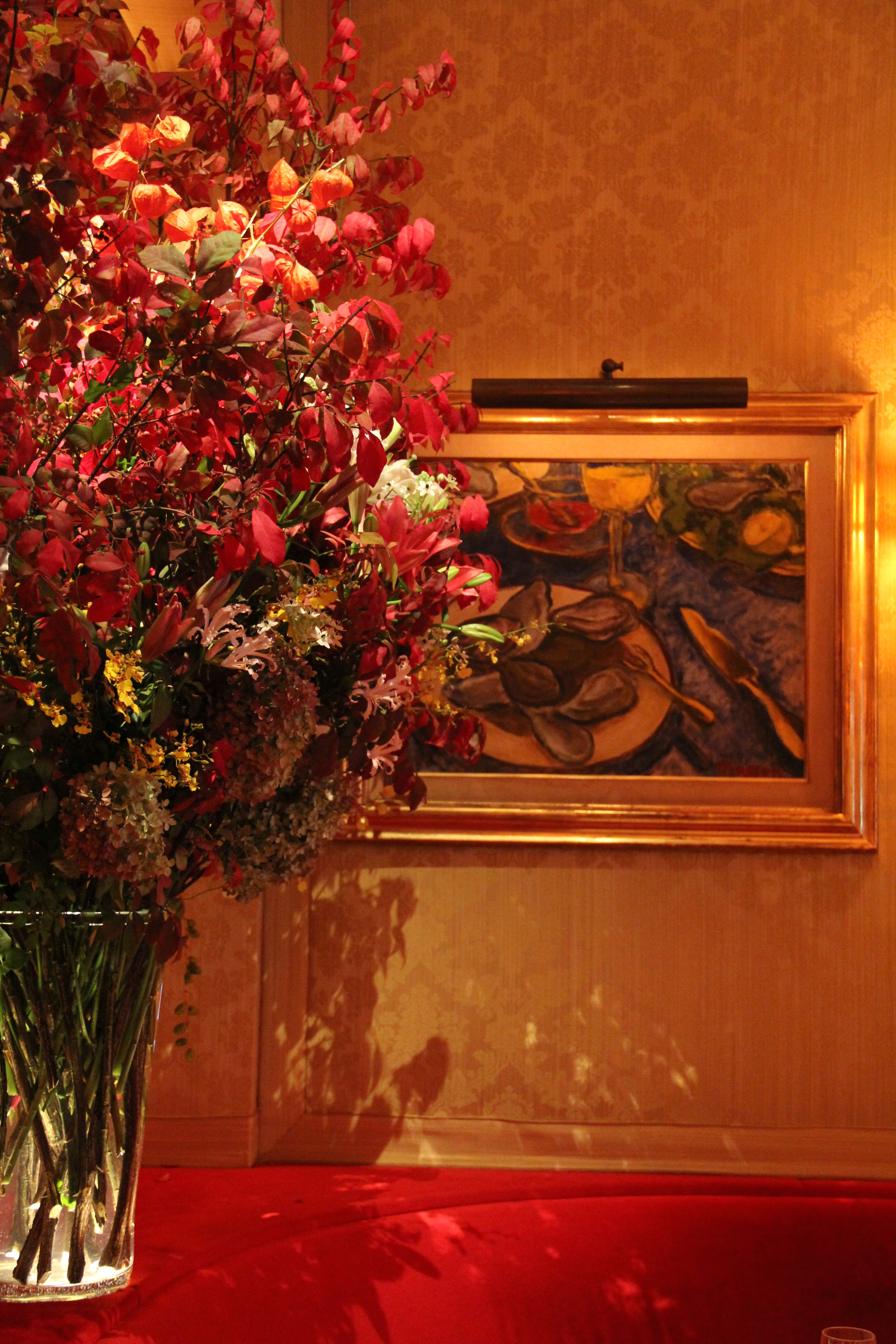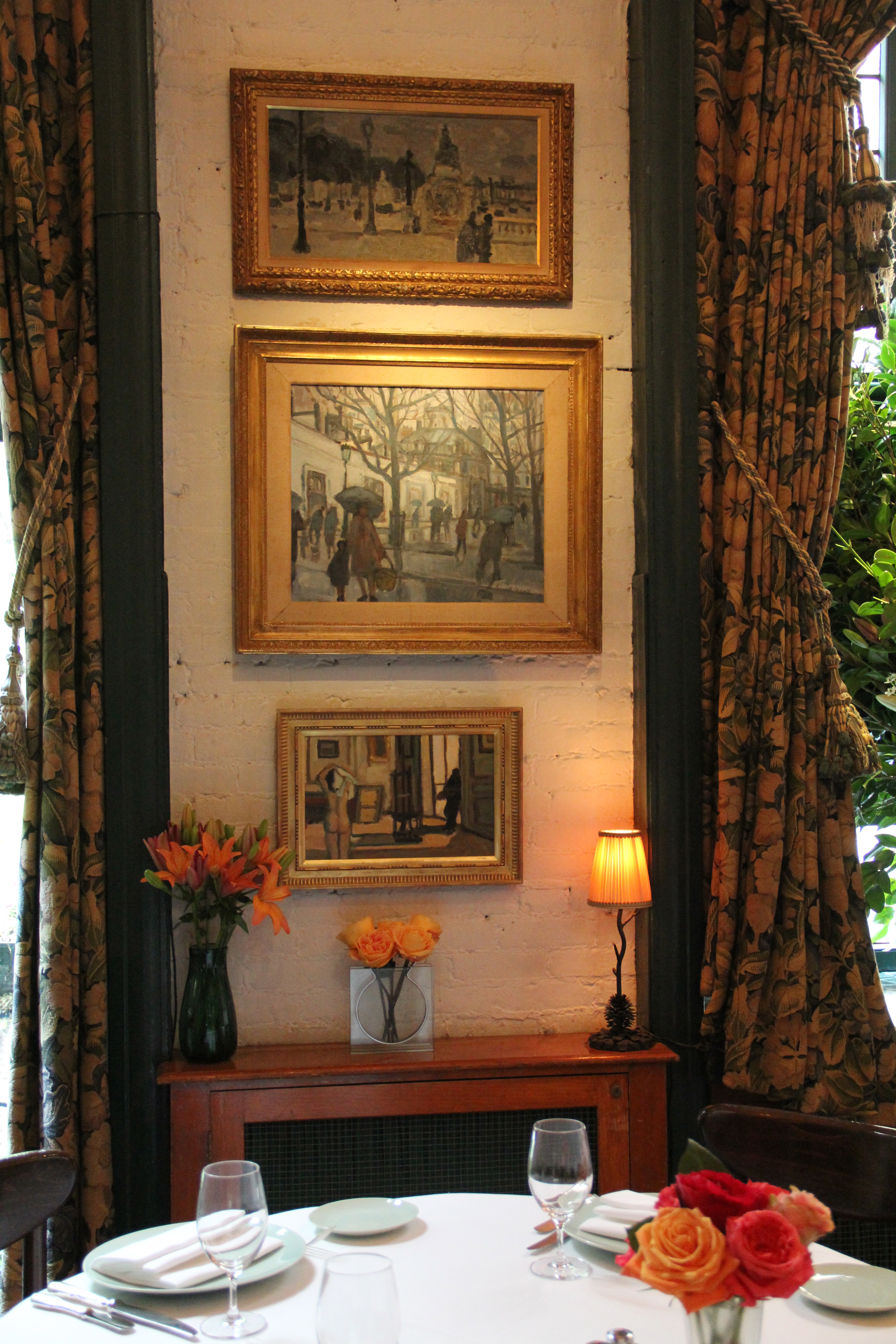 Walking into La Grenouille is just as inspiring today as it was fifteen years ago. The abundant and vibrant arrangements still take my breath away. Charles’ painterly approach with a keen eye for harmonious colors and an asymmetry which allows for each branch or flower to express its own unique language is marvelous. The sensitive paintings created by both Charles Sr. and Jr. hang on the walls both upstairs and down. In the dining room downstairs, Father’s paintings hang on one side of the room, son’s paintings hang on the other. Art truly surrounds the diner’s experience at La Grenouille. As Charles so eloquently closes in his book, The Flowers of La Grenouille, “And when the restaurant opens its doors so early in the morning, throughout the seasons, with so many flowers, it is only the introduction to a daily ritual; a labor of love, never a mechanical routine. It is the fresh creation of what is on the plate and around it. It is a daily feast, the celebration of life.” A celebration of life in the highest.