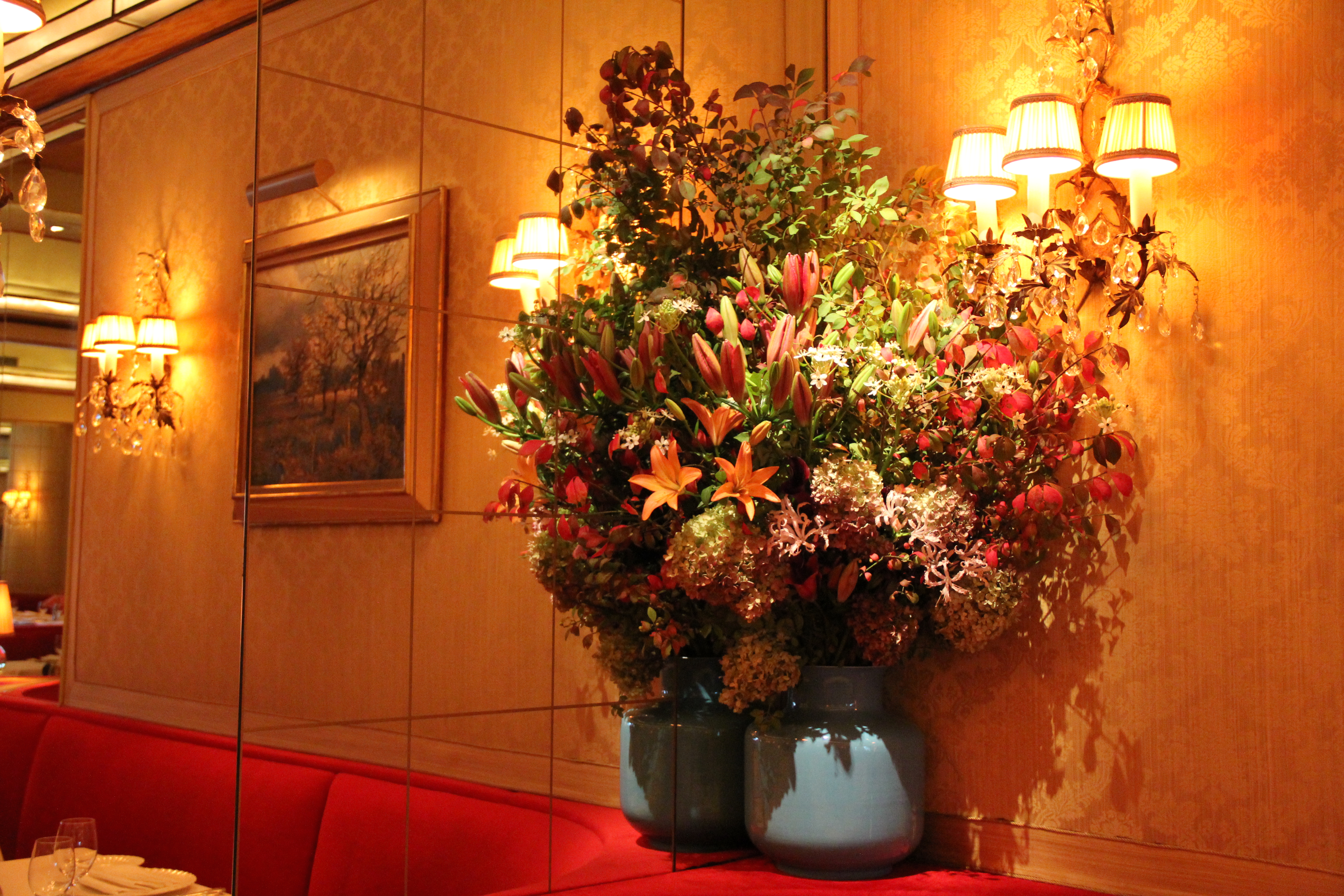 Prior to living in New York City, no visit to the city was complete without seeing the flowers of Takashimaya or the flowers of La Grenouille. I can still remember the awe I felt walking into the high-ceilinged atelier-like flower shop of Takashimaya on Fifth Avenue, as well as peeping my head into the brilliantly colorful, cavern-like dining room of La Grenouille just east of Fifth Avenue. Both were held in the highest regard to my young florist-seeking self. I call myself a New Yorker now and my florist-self seems to have come full circle. I have since worked in Takashimaya’s atelier-like flower shop under the direction of Christian Tortu, Thank You, Alicia. And just recently, I was granted a private tour of the flowers of La Grenouille, Merci, Charles.