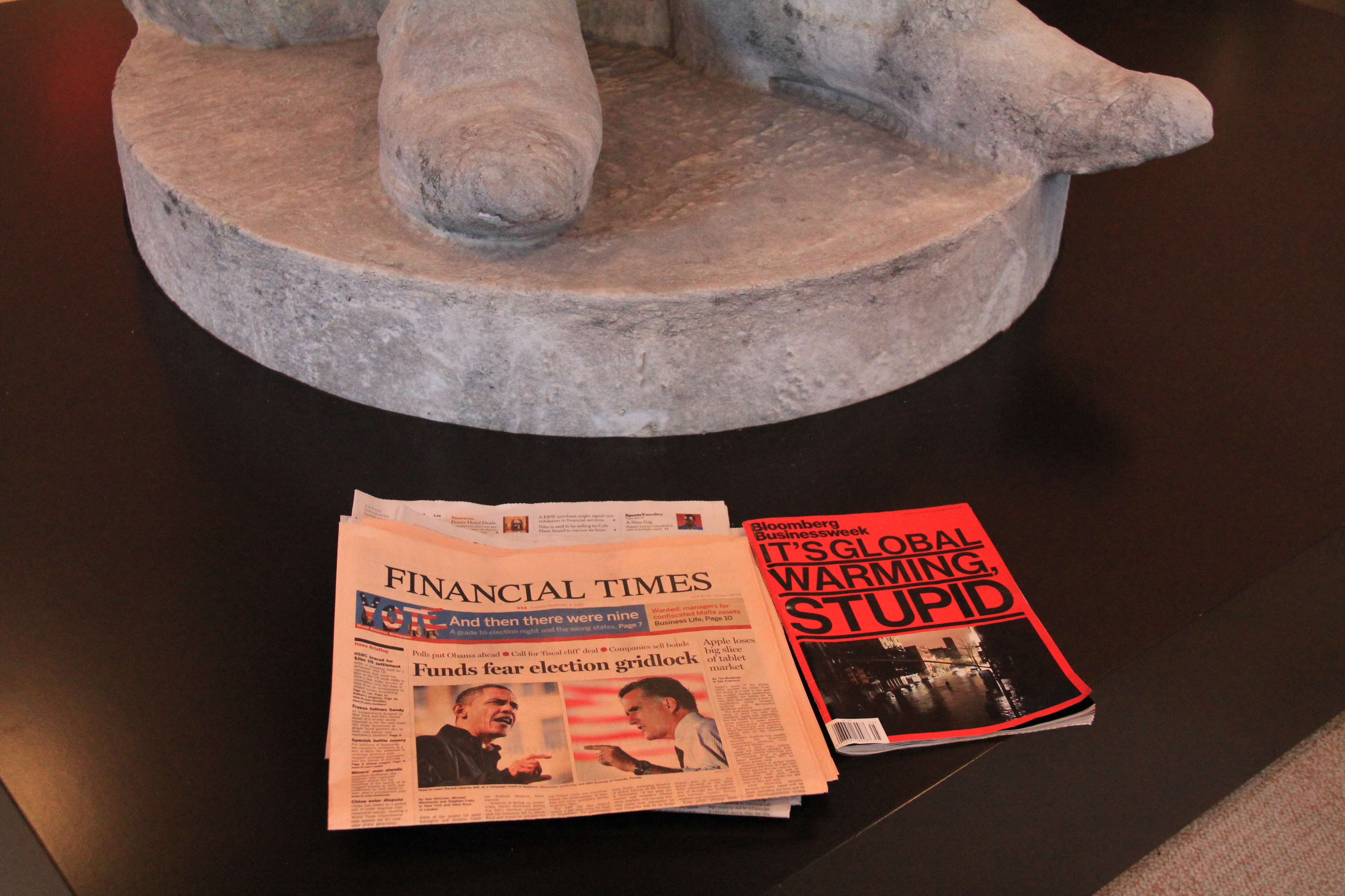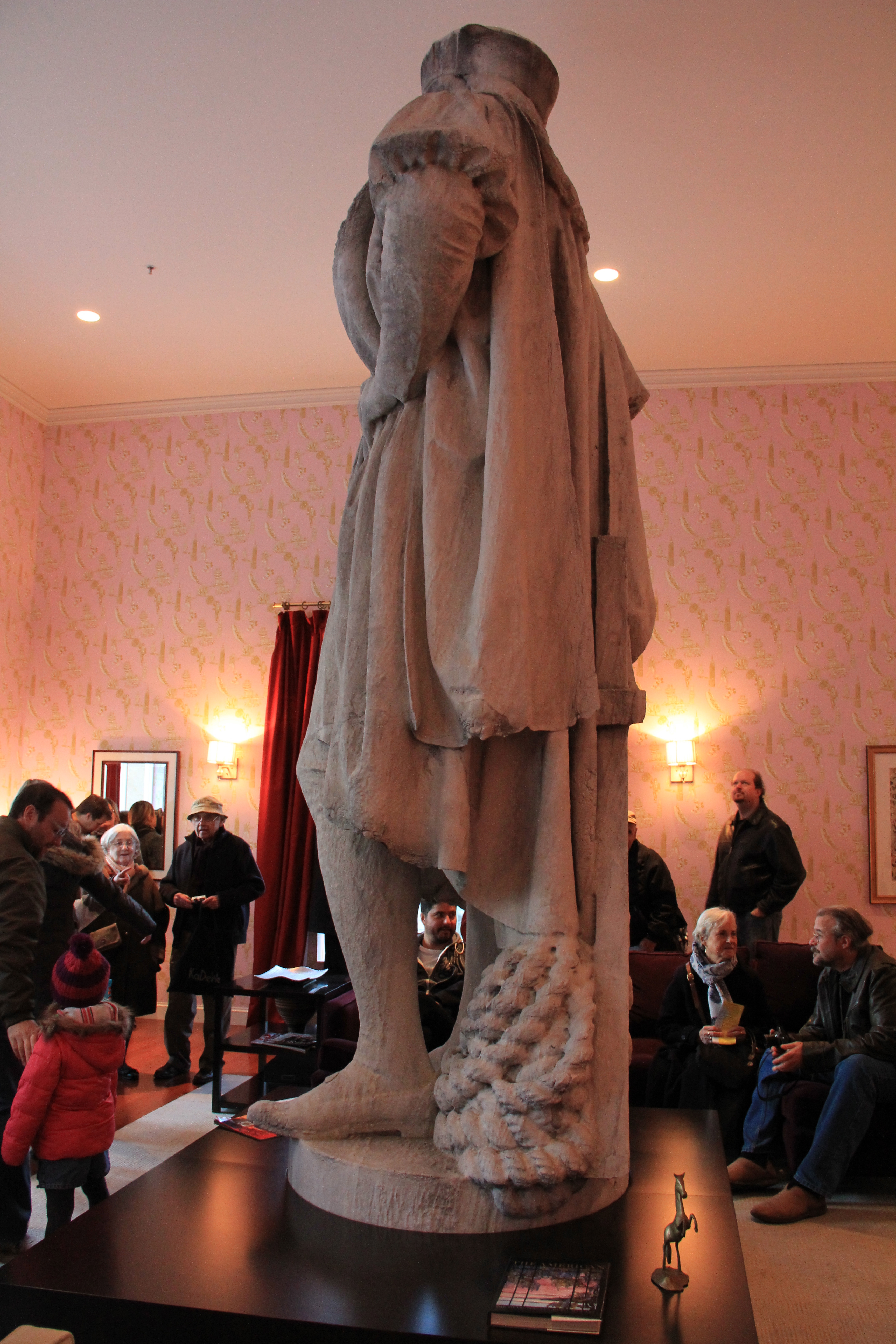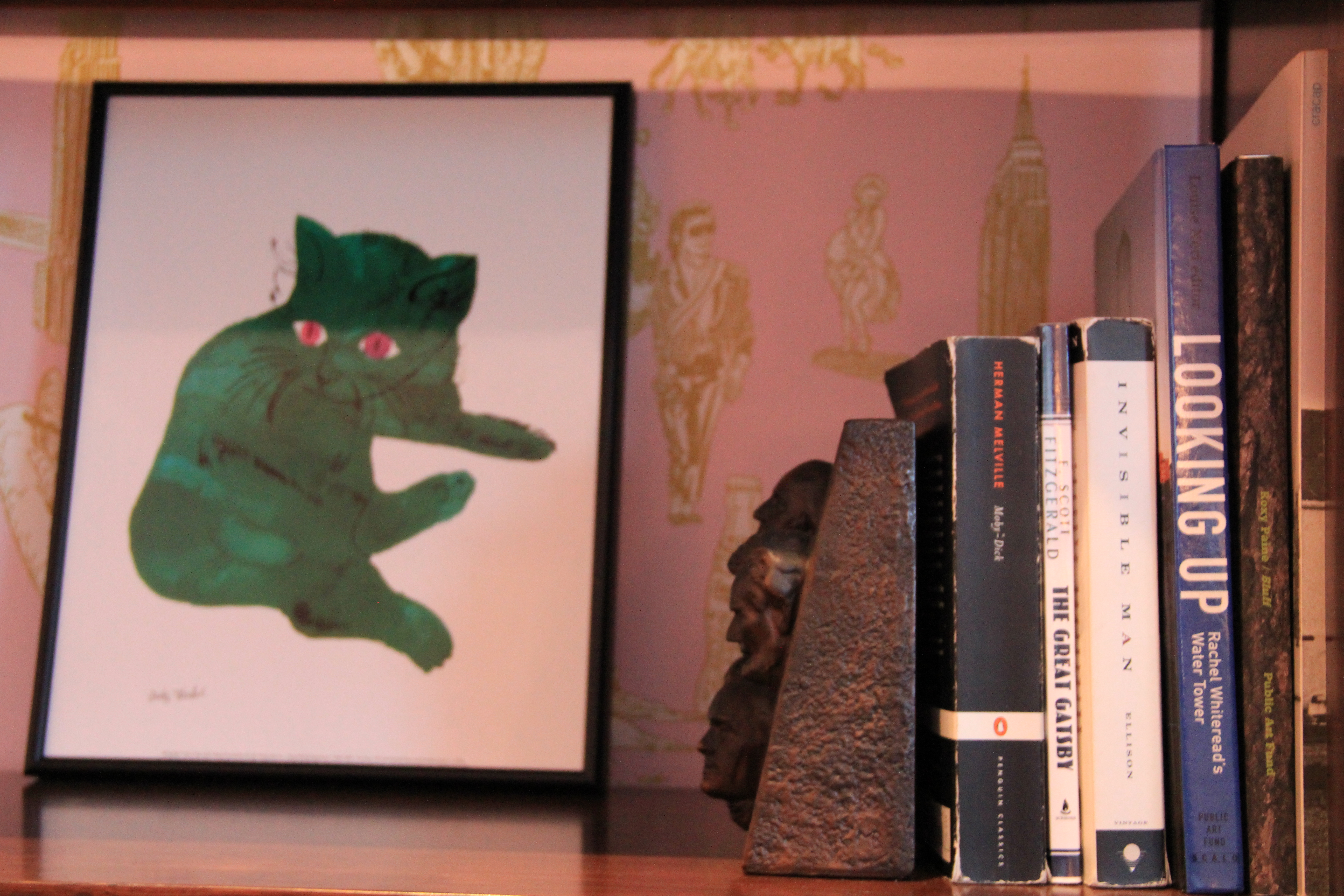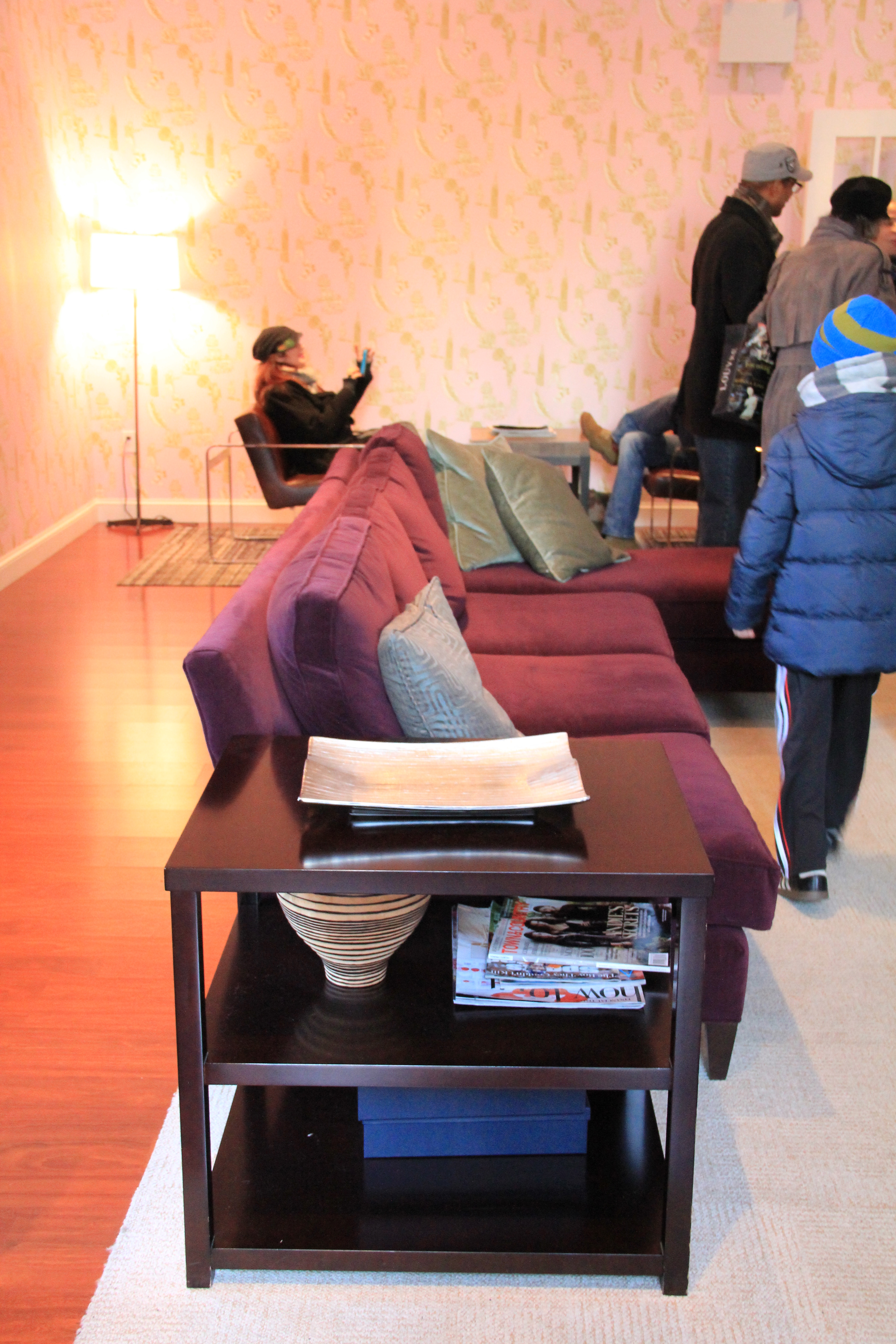 As my daughter had Election Day off, we decided a good thing to do after voting was to go see Tatzu Nishi’s Discovering Columbus, at Columbus Circle. A walk up six flights of stairs brings the viewer into an imagined modern living room for Columbus Circle’s Christopher Columbus statue complete with a large, flat screen TV and Americana-inspired pink toile wallpaper designed by Nishi. It was quite something to be at the foot of a sculpture which is normally too far off to really experience, and to “sit” with it for a while. Japanese artist Tatzu Nishi studied monuments in New York City and chose Christopher Columbus for its height, with a wish to give the viewer a new dialogue with the statue. Known for his temporary art installations which fabricate living environments around artworks and public monuments all over the world, Nishi’s Discovering Columbus is a unique gift to New York City. Free passes to visit with Mr. Columbus can be found here for just another week and a half. It’s certainly worth a view that may never be available again.